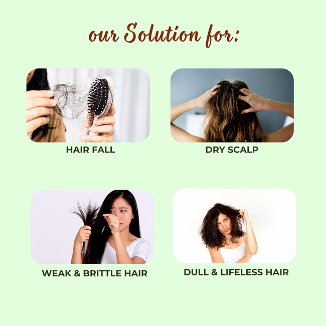 ⦿ Deep Nourishment: Herbal blend to cleanse and nourish the scalp deeply.