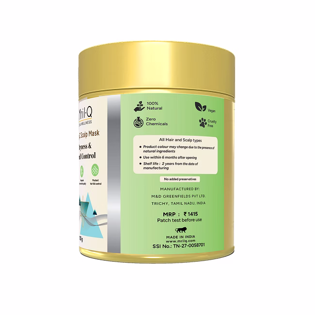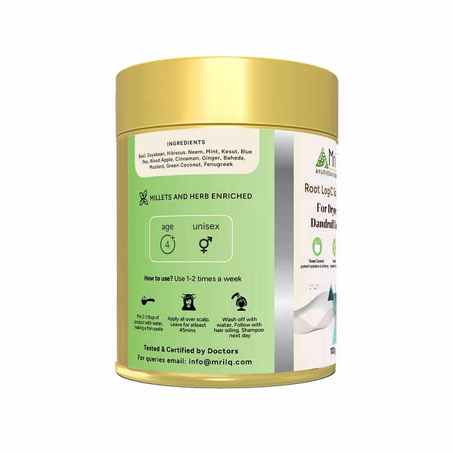 Ingredients simplified: Green coconut, Methi, Soybean, Hibiscus, Neem, Mint, Belpata, Mustard, Cinnamon, Ginger, Bhringaraj, Baheda